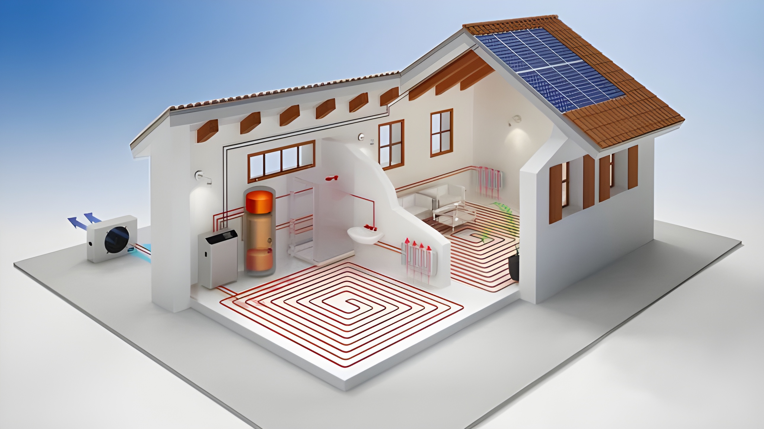 El suelo radiante es, sin duda, la pareja perfecta. Al funcionar con agua a baja temperatura (alrededor de 35°C), permite que la bomba de calor trabaje con un esfuerzo mínimo, maximizando el ahorro. Además, el suelo radiante ofrece un confort térmico inigualable, ya que el calor se distribuye de forma uniforme desde el suelo, evitando corrientes de aire y acumulaciones de polvo. En verano, este mismo suelo puede circular agua fría para refrescar el ambiente de manera suave y natural.